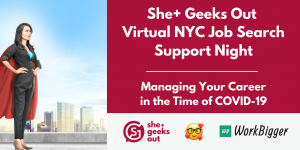 Find out more »She+ Geeks Out Virtual NYC Job Search Support Night