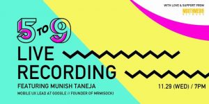 Find out more »5to9 Live Recording featuring Munish Taneja, Founder of MrMiSocki // Mobile UX Lead at Google